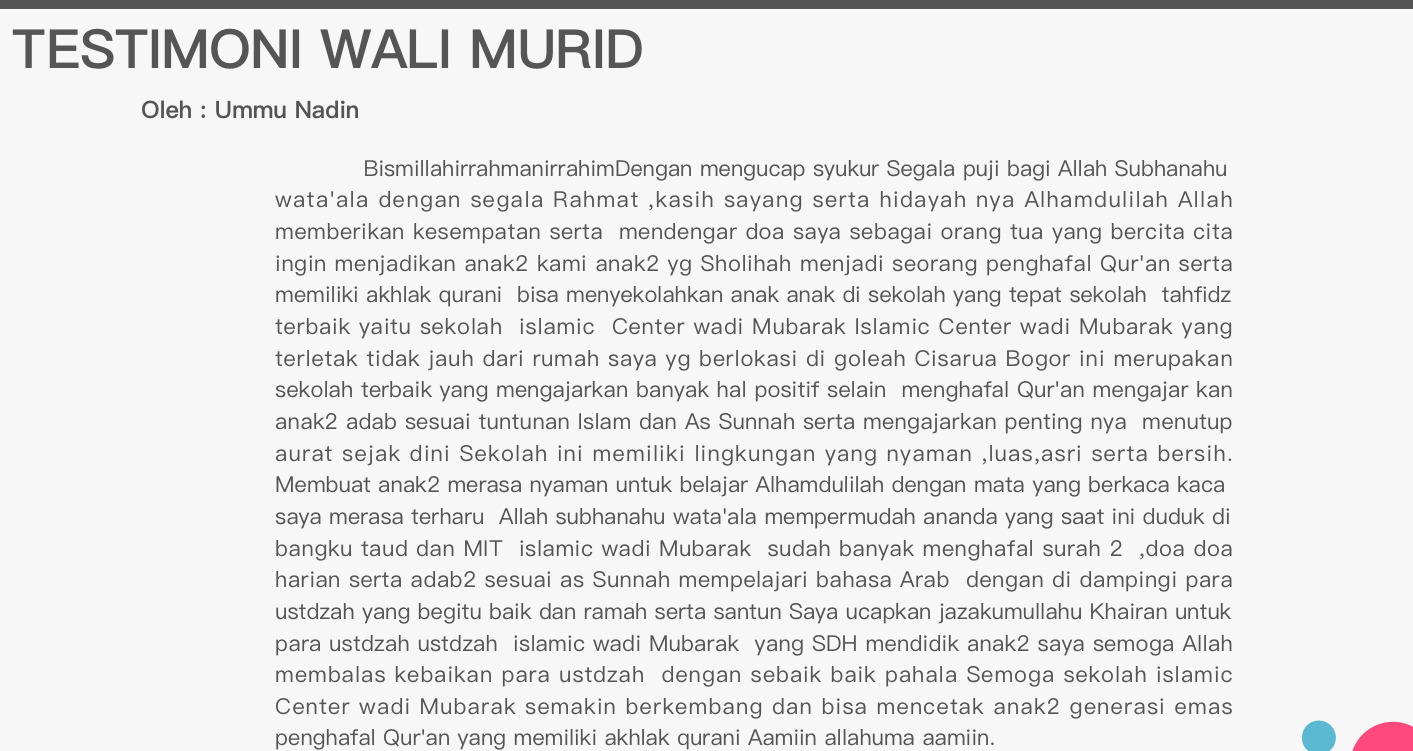 Pimpinan Islamic Centre Wadi Mubarak & Praktisi Qur’anic Parenting